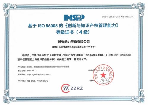 近日,潍柴动力股份有限公司(下称“潍柴动力”或“公司”)成功通过创新与知识产权管理能力分级评价,获得中知(北京)认证有限公司颁发的基于ISO 56005标准《创新与知识产权管理能力》等级证书(4级),成为山东省首家获得四级证书的企业。